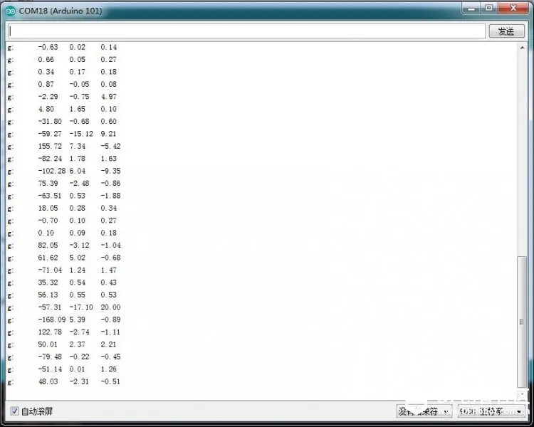 串口读出来的数据,很准确,可以转动板子看看每个轴的数据变化: