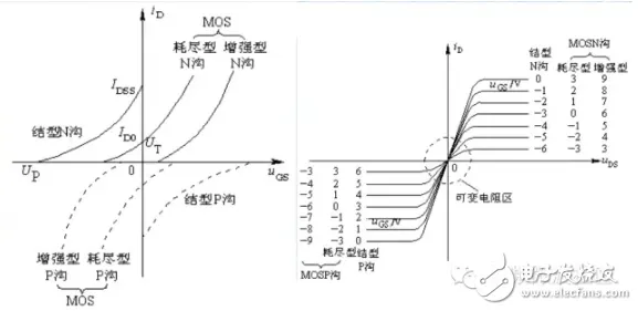 结型场效应管的特性曲线有两条,