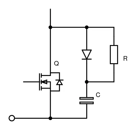 在开关缓冲电路中,电容器与电阻/二极管组合串联,并通过电源开关(通常为IGBT或MOSFET)连接,以控制dV/dt,如图2所示。