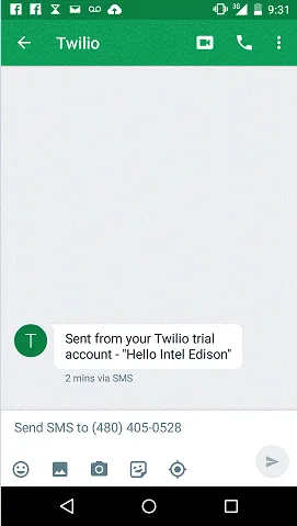 <center><strong>代码示例 4: 使用 Twilio* 发送短信示例</strong></center>