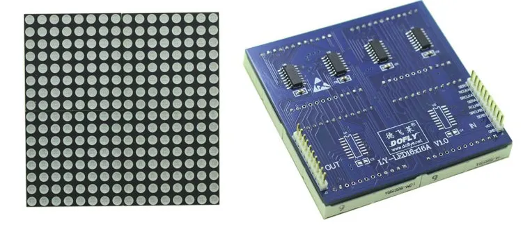 最后还需要连接LED点阵,才能使机器人的表情能够显示出来。我们目前使用的LED点阵式16*16的红绿双色点阵,如图: