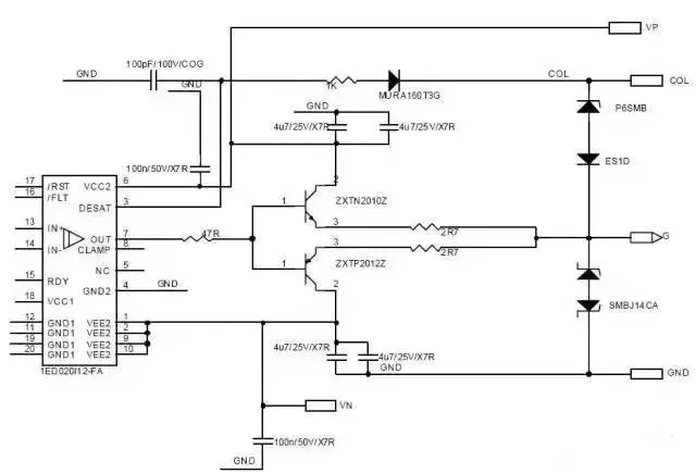 为了保险起见,可采用TVS等栅极箝位保护电路,考虑放置于靠近IGBT模块的栅极和发射极控制端子附近。