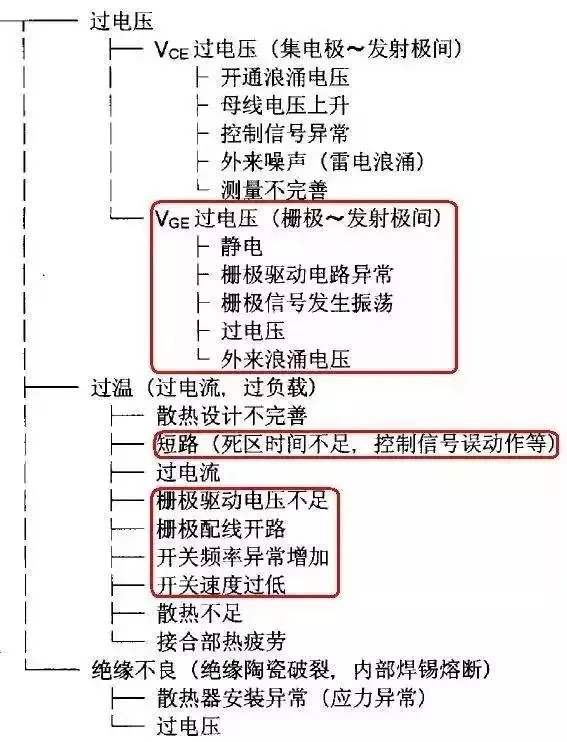 IGBT栅极引起的问题列表(红色部分圈注的):