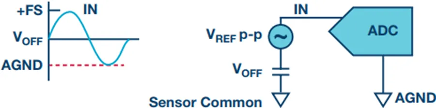 另一个常见的差分反相失误是180°反相、但共模不当的信号,或者将ADC的IN-引脚连接至直流基底电压。在负ADC输入端提供直流电压很快便会违反共模范围规格,同时消除差分信号的动态范围优势。第二种差分信号是测量任意两个信号之间的差分,而不论共模如何。ADI提供一系列基于SAR ADC技术的集成式数据采集解决方案测量全差分信号。对于寻找具有宽容许输入共模范围的集成式数据采集解决方案的信号链设计人员,ADI提供ADAS3022 和ADAS3023。它们分别是双极性连续和同步采样数据采集系统,共模范围宽达±10 V。在此范围内,它们可展示任意两个信号间的差异。