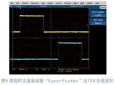 在这种“伪差分TDR”设备自身的屏幕上,往往会经过人为的软件调整,令我们看到的阶跃信号同时发出且方向相反的。