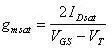 ②在饱和电流IDsat一定时:饱和跨导gmsat却与饱和电压(VGS-VT)成反比: