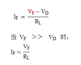 设V<sub>D</sub>为二极管正向压降(硅管为0.7V左右),当V<sub>F</sub>远大于V<sub>D</sub>时,V<sub>D</sub>可略去不计,则: