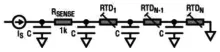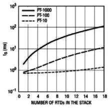 单个 LTC2983 温度测量器件能支持多达 18个两线式RTD探头(如图 1 所示)。每个 RTD 测量包含同时检测由于电流 IS 而在 RSENSE 和 RTD 探头RTDx 两端所产生的两个电压。对每个电压进行差分检测,而且鉴于 LTC2983 拥有高共模抑制比,因此堆栈中 RTD 的数量并不会对个别测量产生不利影响。